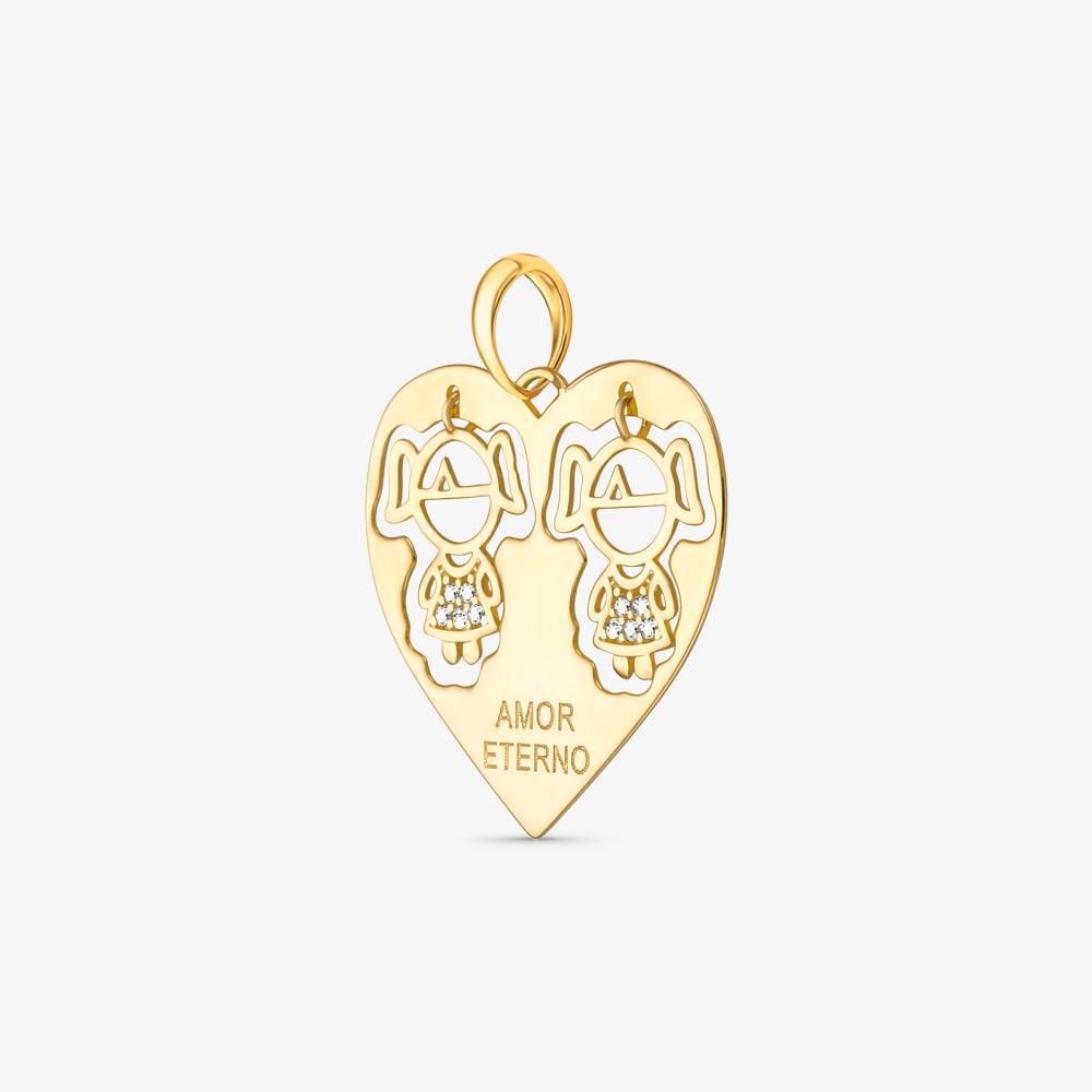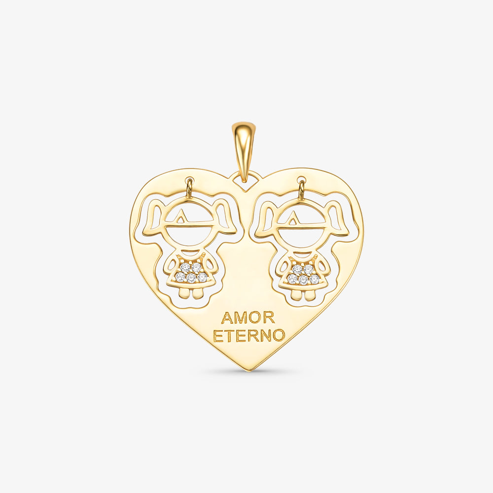 Pingente 2 Meninas com Pedra Coração Amor Eterno em Ouro Amarelo 18K