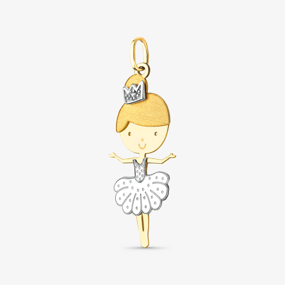 Pingente Bailarina com Coroa Bicolor e Pedras em Ouro 18K