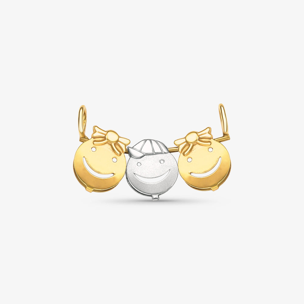 Pingente Canga 2 Meninas 1 Menino em Ouro Amarelo e Branco 18K