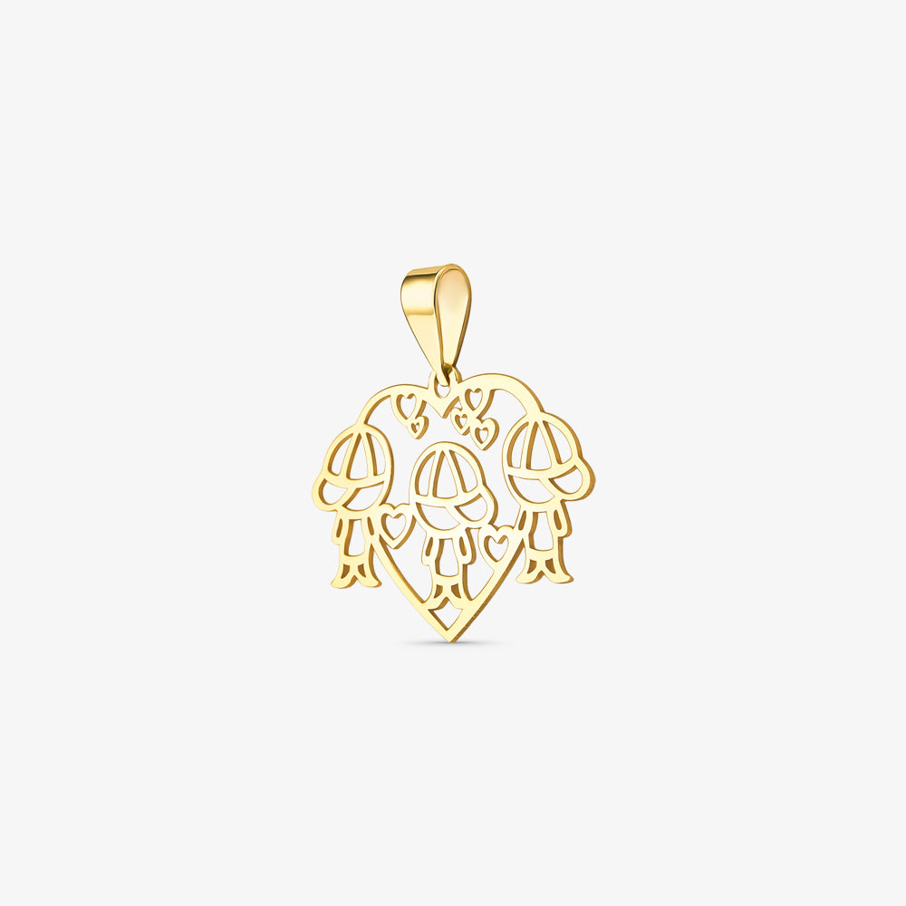 Pingente Coração Três Meninos em Ouro Amarelo 18K