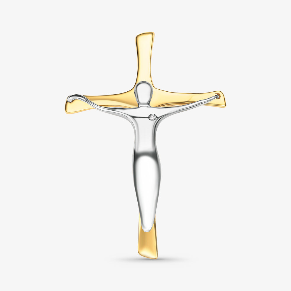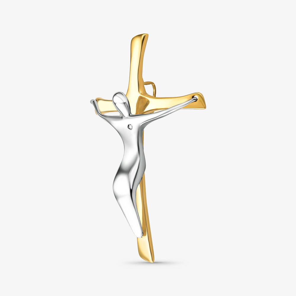Pingente Cruz Bicolor com Cristo e Diamantes em Ouro 18K