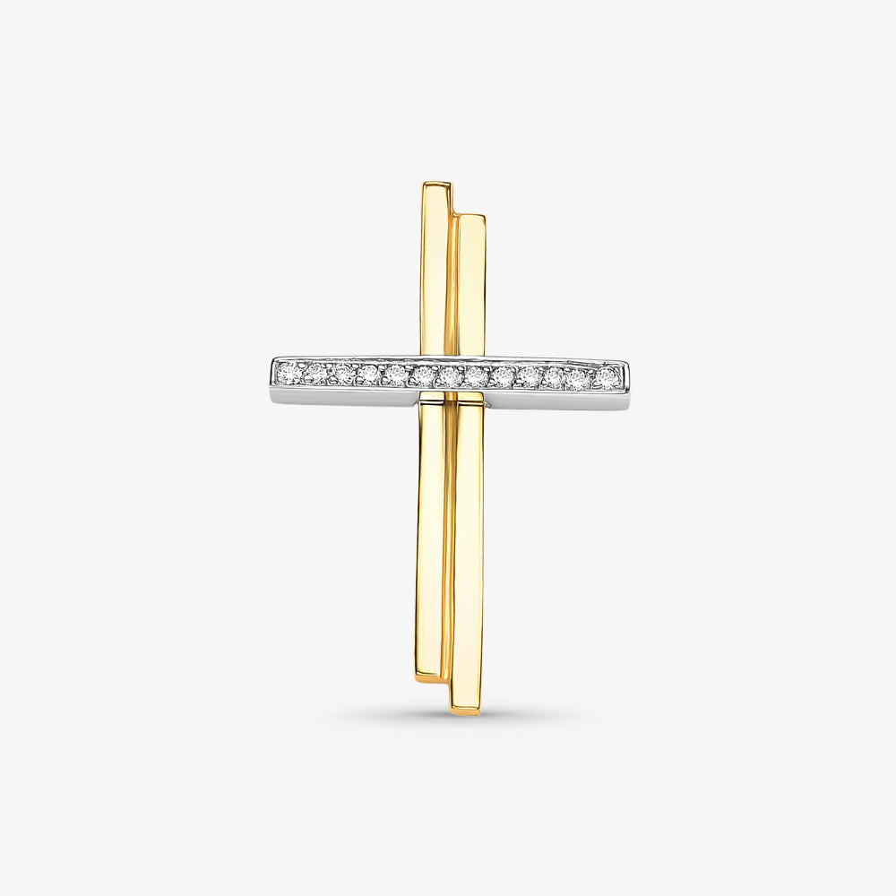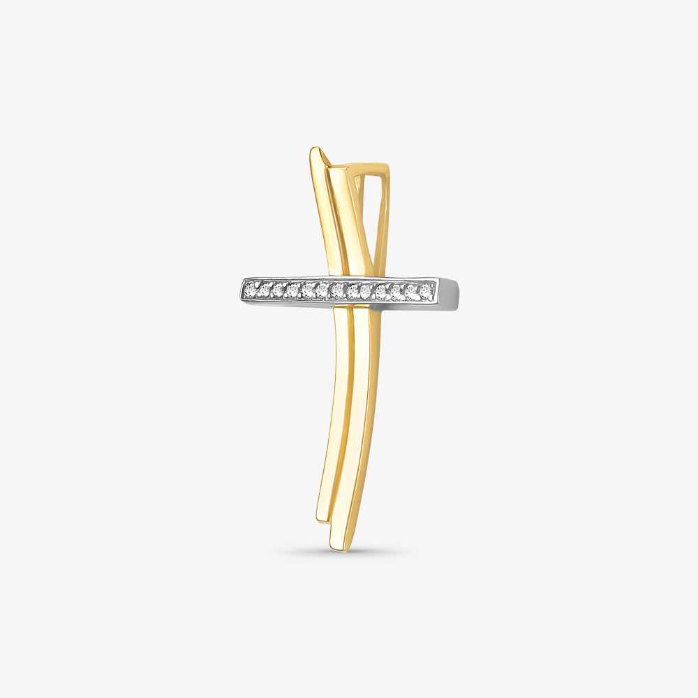 Pingente Cruz Bicolor com Diamantes em Ouro 18K