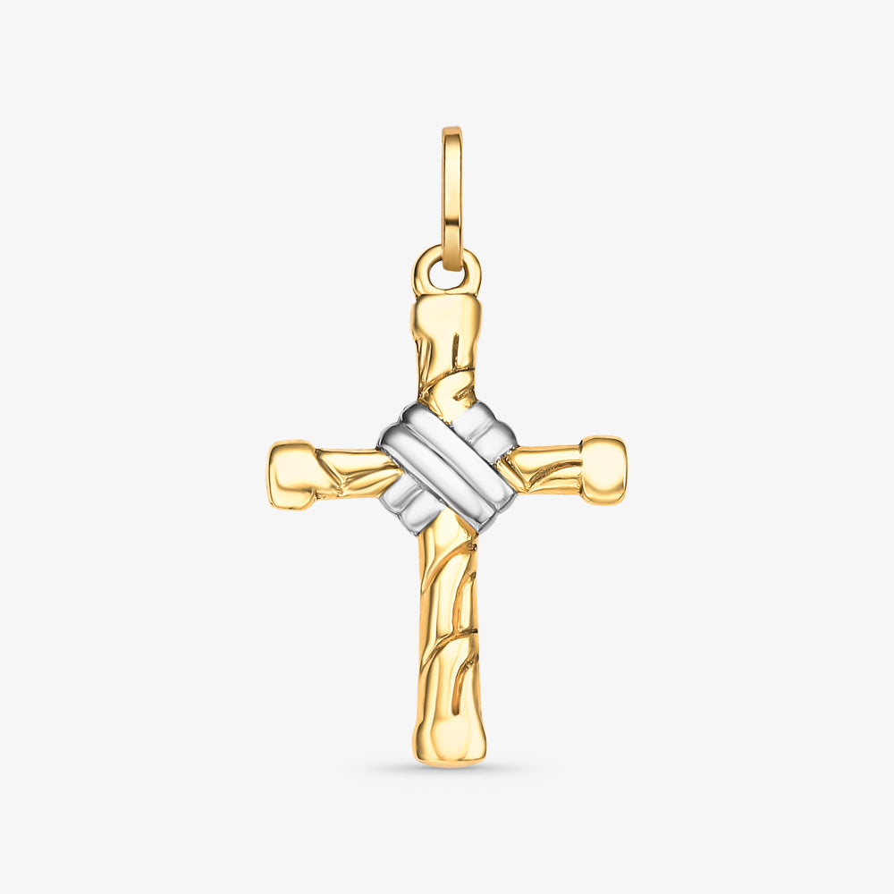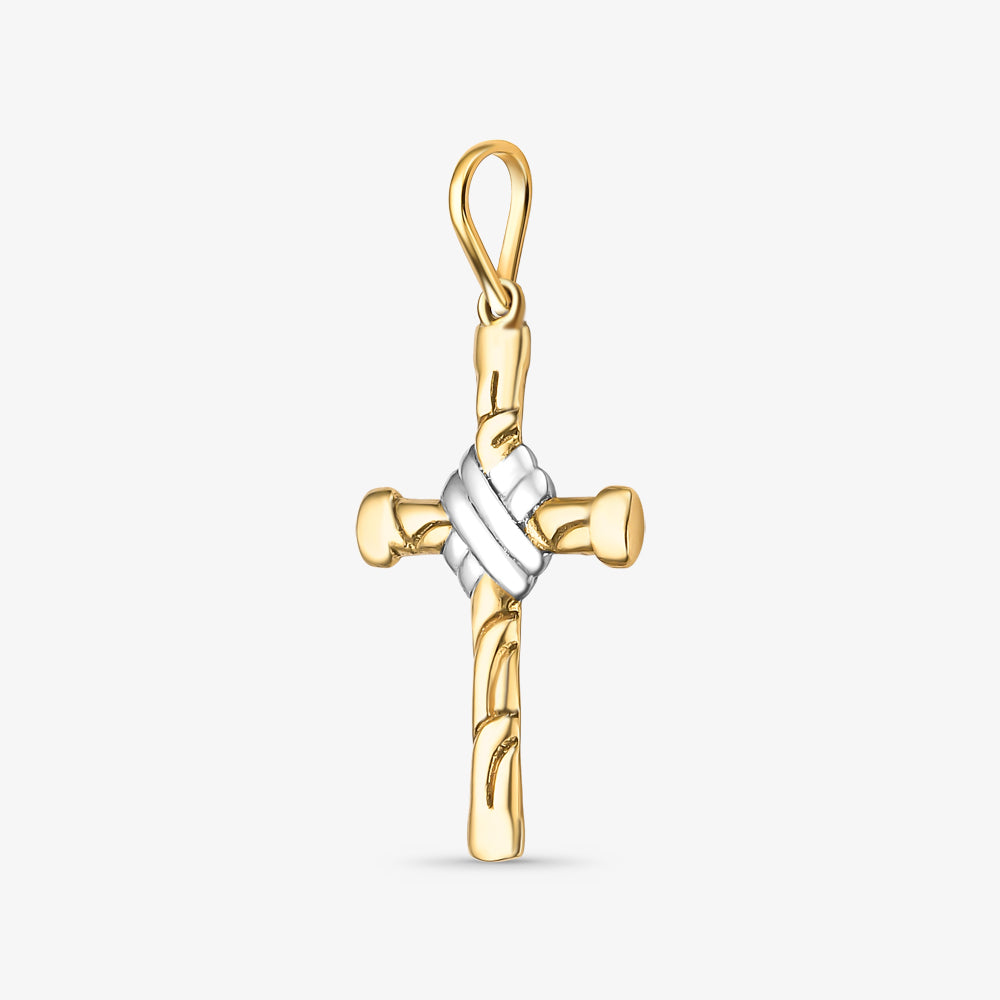 Pingente Cruz Bicolor Trabalhada em Ouro Amarelo 18K