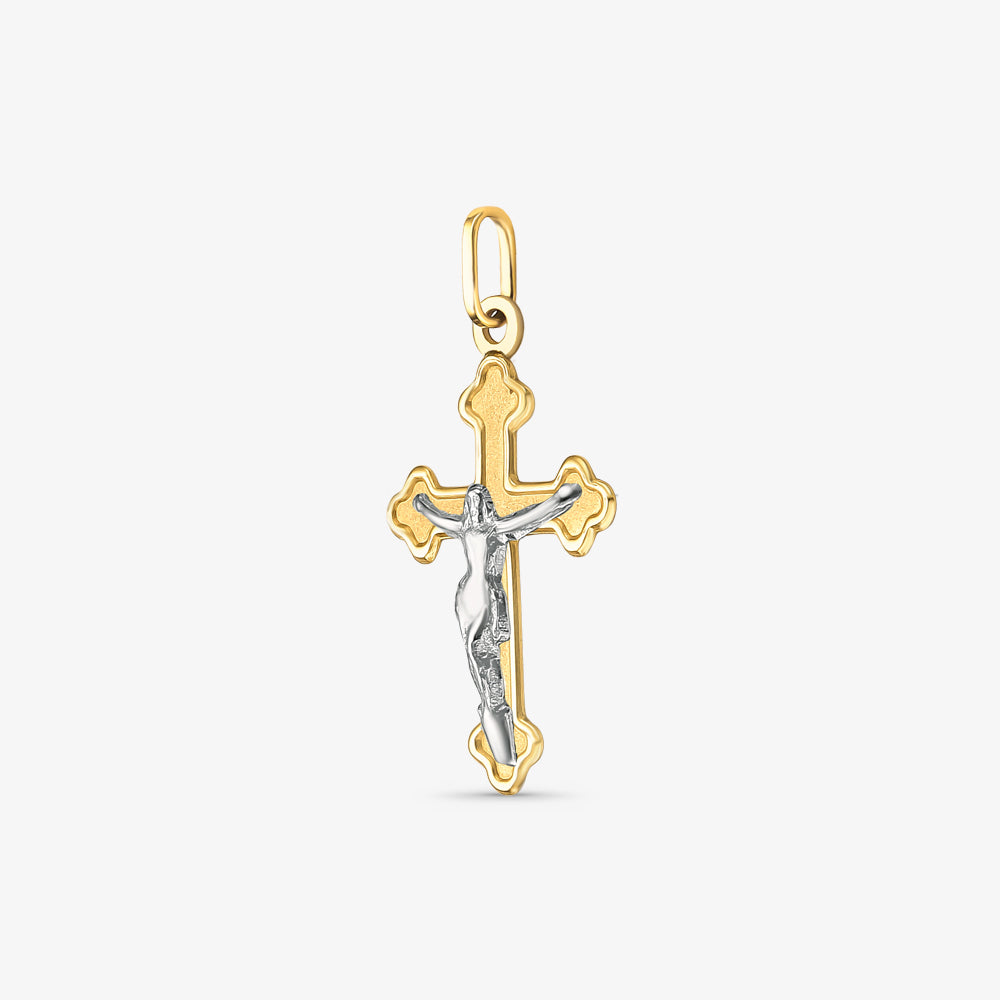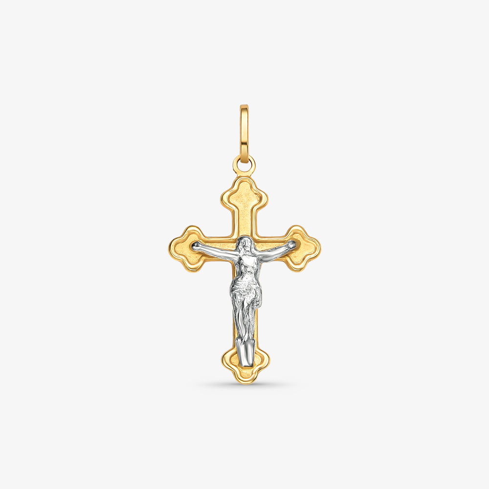 Pingente Cruz com Cristo Bicolor em Ouro 18K