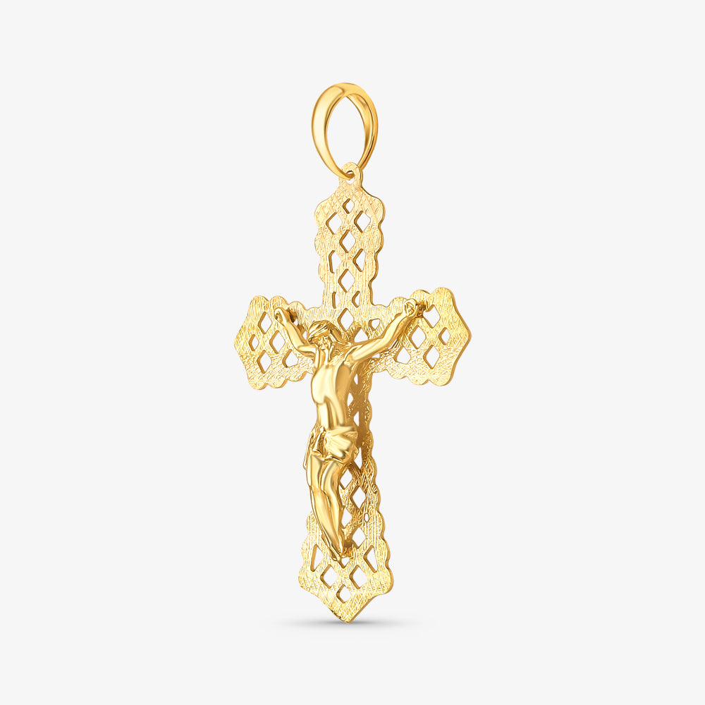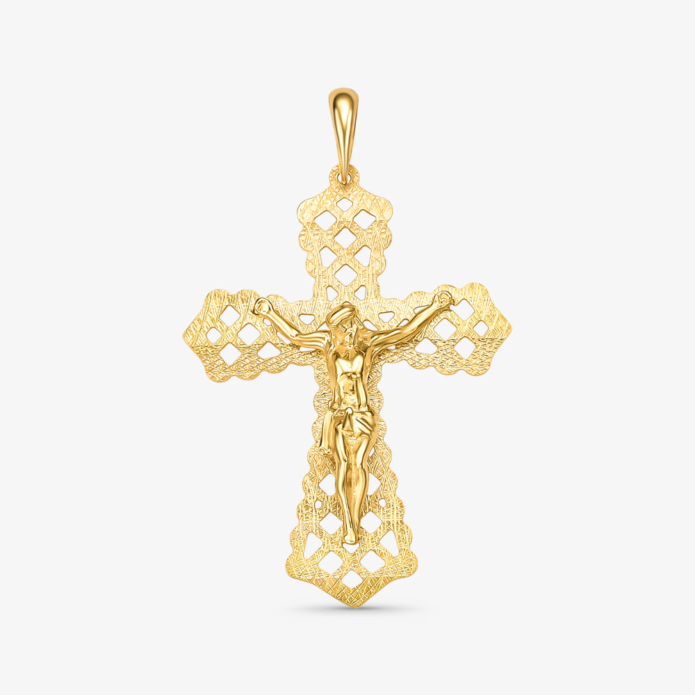 Pingente Cruz com Cristo Grande Estampada em Ouro Amarelo 18K