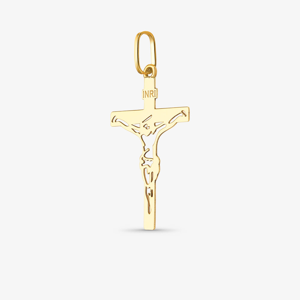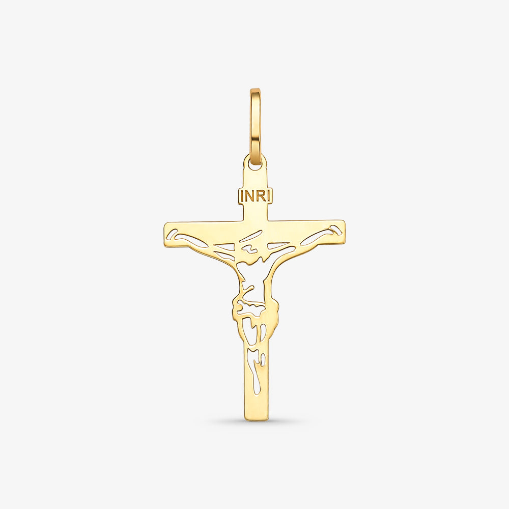 Pingente Cruz com Cristo Vazado INRI em Ouro Amarelo 18K