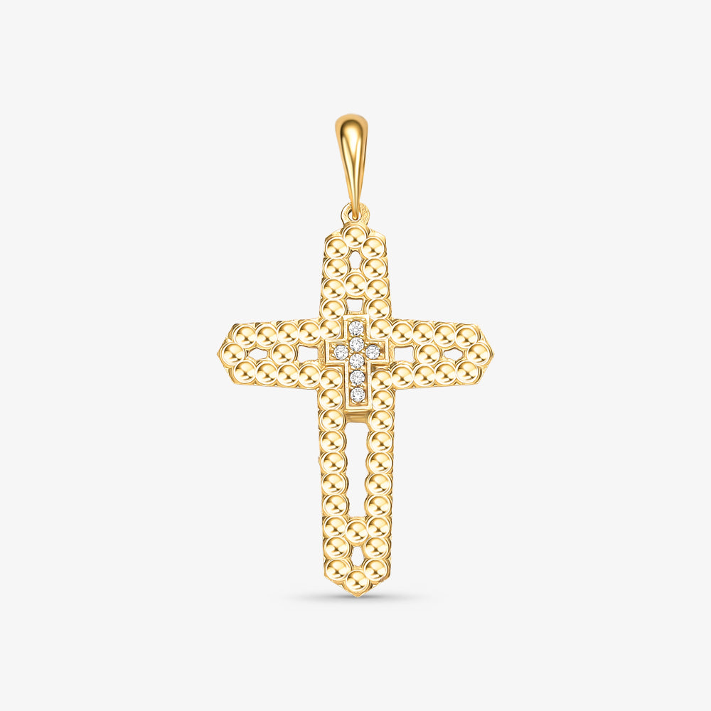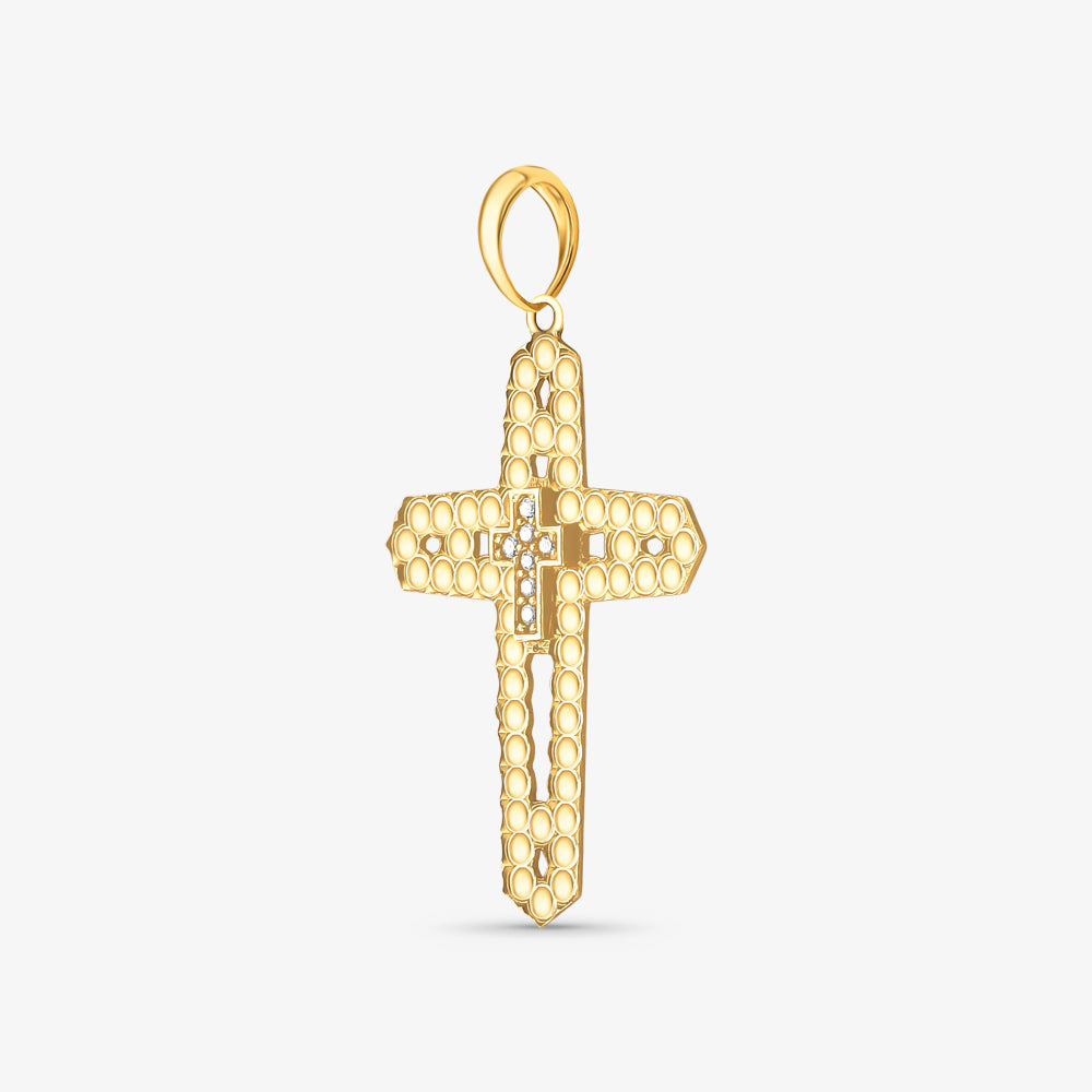 Pingente Cruz Estamparia com Pedras em Ouro Amarelo 18K