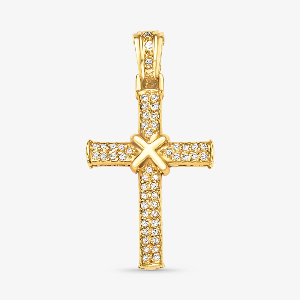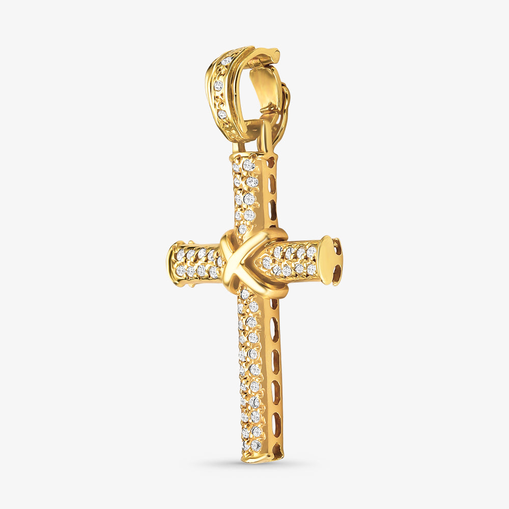 Pingente Cruz Fios com Diamantes em Ouro Amarelo 18K