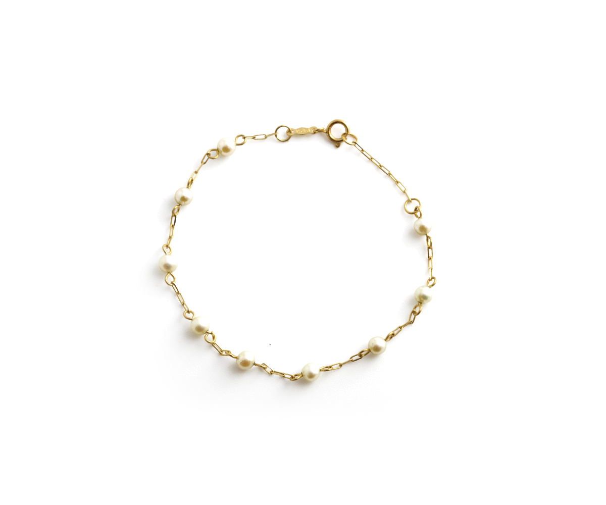 Pulseira infantil 15cm perola natural 1,15g ouro 18k750